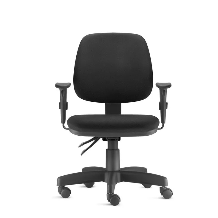 Cadeira Presidente com encosto em tela de poliéster preta e assento estofado, braços reguláveis e mecanismo Back System para maior conforto durante o uso prolongado. Base giratória em polipropileno preto com rodízios, suporta até 120 kg e conta com garantia de 4 anos. Ideal para estações de trabalho e home office, na cor preta, com medidas aproximadas de 67 x 44 x 69 cm (L x P x A) e atendimento à NR-17.