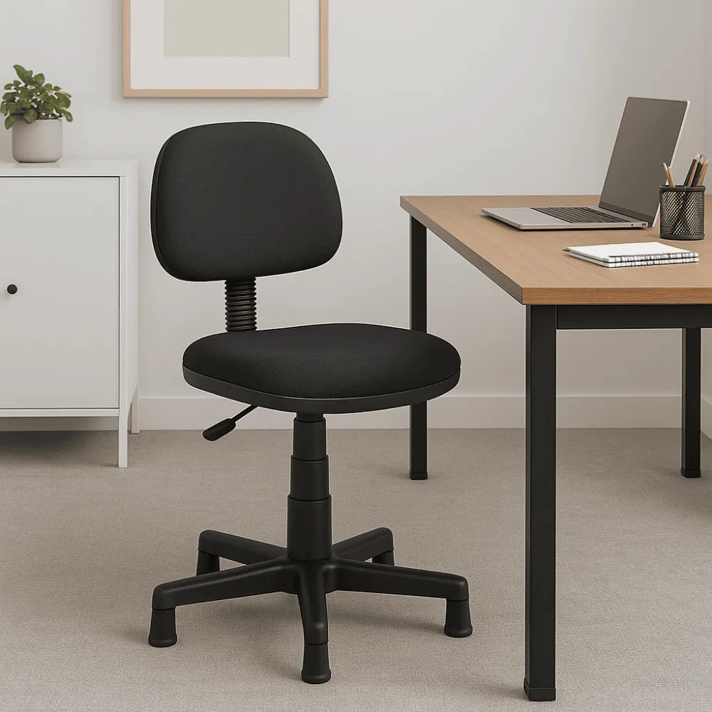 Ergonômica e anatômica, giratória, pistão a gás, espuma injetada de 30mm, regulagem do encosto tanto na horizontal como na vertical e base em formato aranha .